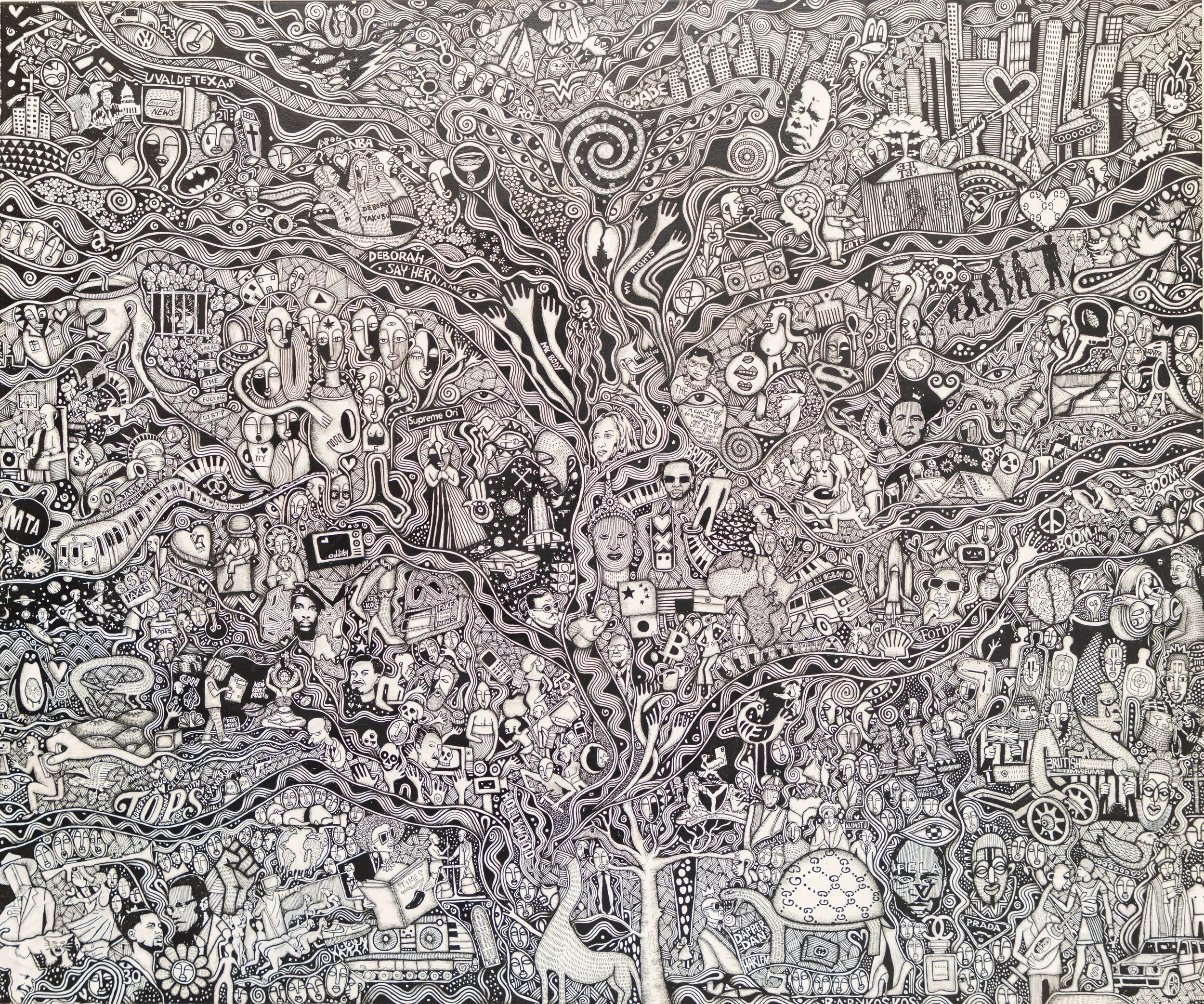 A striking commentary on events and people that were integral in shaping the year. In this piece, the audi- ence is challenged to exercise their agency to explore figures, symbols and words created by Láolú’s signature technique of combining the ‘Sacred Art of the Ori’ and ‘Afromysterics’. Láolú’s technique is a language, a line tell- ing a compelling story that spans generations and borders. The work embodies his thoughts on capitalism, genocide, police brutality, fake news and human rights raising aware- ness of the parallels between what’s taking place in Ameri- ca and across the African Diaspora.